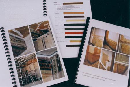 Restauratie en reconstructie 19e eeuwse decoratieve plafondschildering in voormalige Teutenwoning te Eksel , België. Gemengde technieken met 100% harsverf en olieverf.